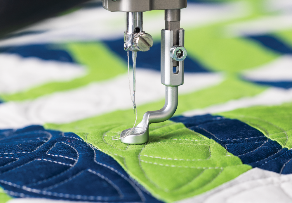 Discover innovative smart technology like a patented edge warning system to keep you inside your quilting area, or a bobbin estimator feature that tells you how much longer your bobbin will last. With a speed of up to 2,600 stitches-per-minute and built-in stitch regulation, you can quilt at any speed knowing that your stitches will be beautifully consistent. The handles of the Q’nique 19X Elite can be adjusted to the most comfortable position for you, so you can quilt for longer without any aches and pains. The soft, ergonomic handles are designed to follow the contours and curves of your hand, relieving stress in your hands and wrists so you can quilt comfortably.