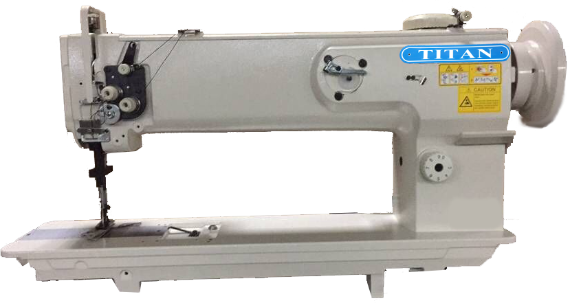 This machine is a single needle, 18” long arm (HIGH VERSION), compound feed with walking foot lockstitch sewing machine. This version allows for sewing of larger work because of the raised upper arm of the machine. It is equipped with a climbing device that allows the adjustment to the alternation of the upper feed of the machine to climb over different thicknesses of material without using any tools. This can be done on the “fly” so downtime of the machine due to setup is virtually nil. It also comes with dual tension assembly to help with thicker threads, a safety clutch and a semi-automatic oiling system. Developed from the regular TN-1508 series machine, it has a working space of 457 mm (18.28″) x 150 mm (6″) which helps with long or larger workloads. It is suitable for sewing medium to heavy duty materials, such tents, cushion, tarpaulins, car cover etc.