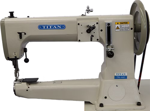 Cylinder-bed, 1-needle, Compound Needle Feed, Walking foot, Lockstitch Machine with Large Shuttle-hook for Extra Heavy Materials.