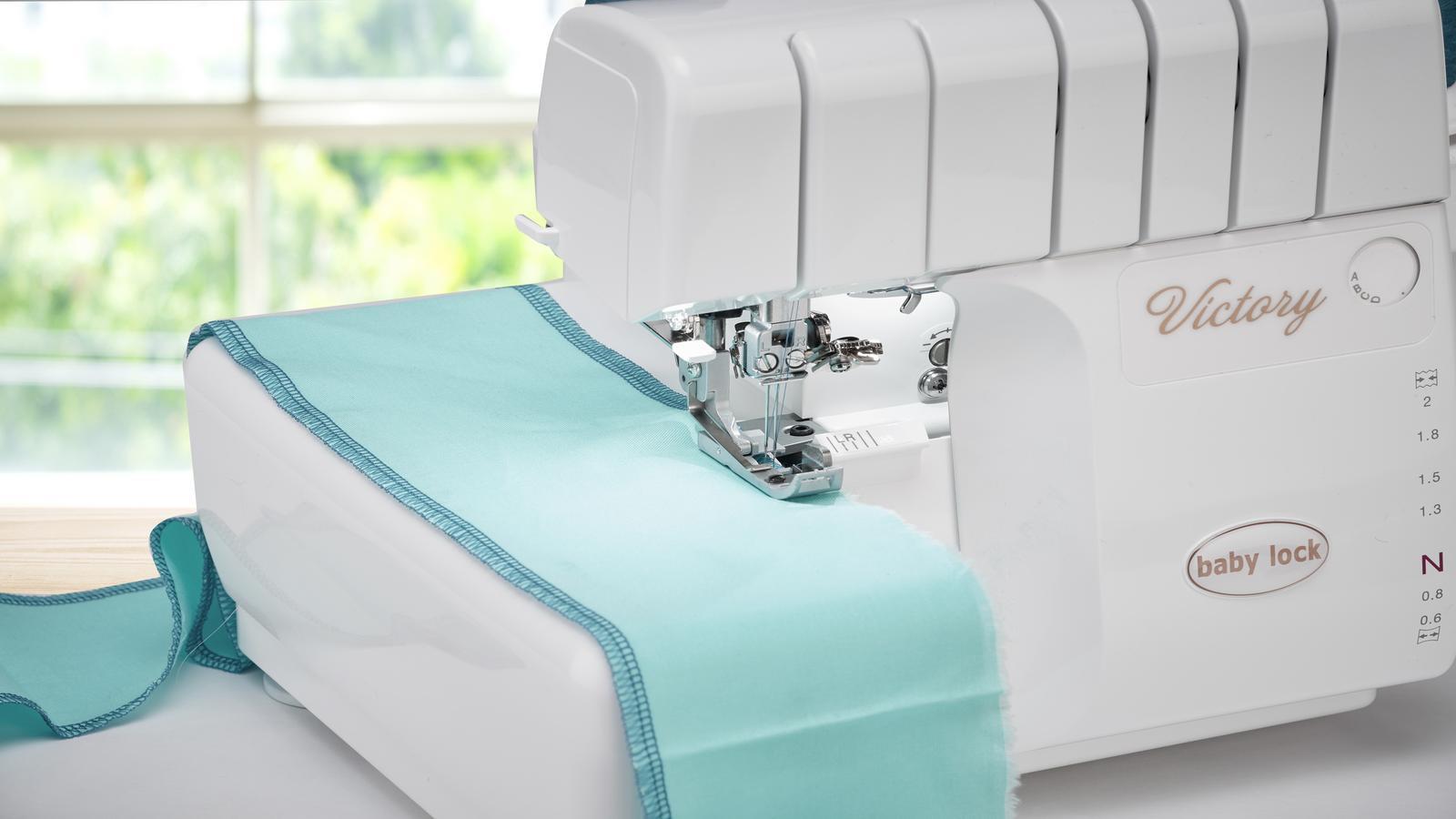 Ready to declare victory over threading your serger? Look no further than the Baby Lock Victory serger. This advanced home serger includes Jet-Air Threading™, which threads the lower loopers with the touch of a lever and Automatic Thread Delivery™ to thread in any order. Plus, Victory’s presser foot features a 6mm height that makes serging on thicker fabrics a breeze!